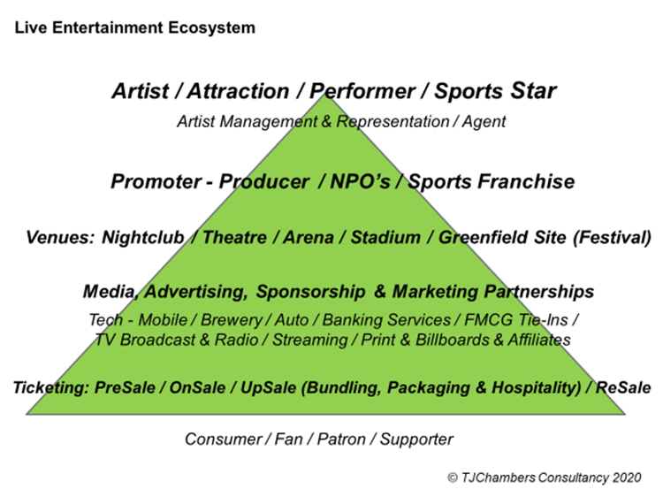 represent the economic relationships that underpin the live entertainment sector, with all intermediaries connected via a series of supply-side rewards and incentives and predicated on the belief that the FOMO-fuelled end-consumer will pay.