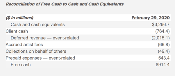 ‘… gives the company a total liquidity position of $3.8 billion. While event-related deferred revenue balances fluctuate over the course of the year, given the timing of shows in 2020 and expected substantial volume of on-sales for 2021 shows in the second half of this year, the company expects this number to remain above seasonally normal levels throughout this year.’