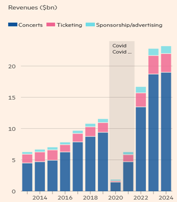 Firstly, in a long-form overview of Live Nation Entertainment by Daniel Thomas (https://www.linkedin.com/in/daniel-thomas-b66a0583/) the Financial Times global media editor, with Eri Sugiura (https://www.linkedin.com/in/eri-sugiura-5b50431a4/) the leisure industries correspondent, who detailed the merger in 2010 between Live Nation and Ticketmaster, the growth in scale and subsequent market consolidation, the alleged abusive monopolistic behaviour, the company’s economic flywheel driven by the high-margin sponsorship + advertising and ticketing divisions, the utilisation of dynamic pricing and whether the bipartisan support In Congress and dozens of U.S. states will mean the DOJ antitrust lawsuit will succeed in breaking up the company – How Live Nation calls the tune for the live music industry, Daniel Thomas and Eri Sugiura, 30th April 2025 – https://www.ft.com/content/fdf2ba90-fc50-4c1f-a2c8-8efcec140980 .